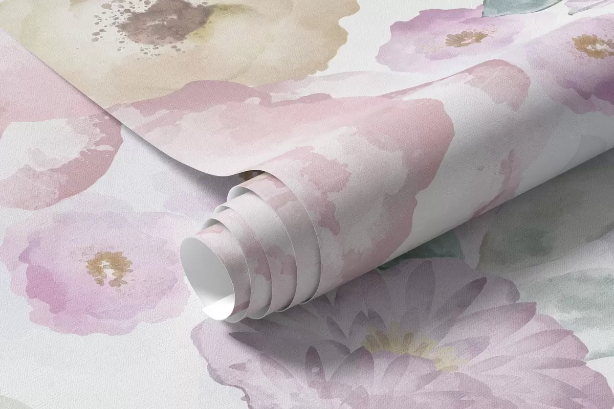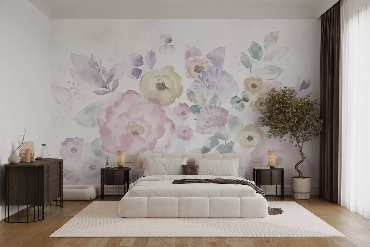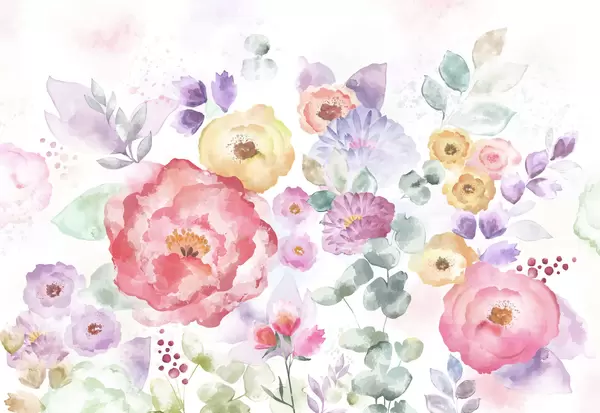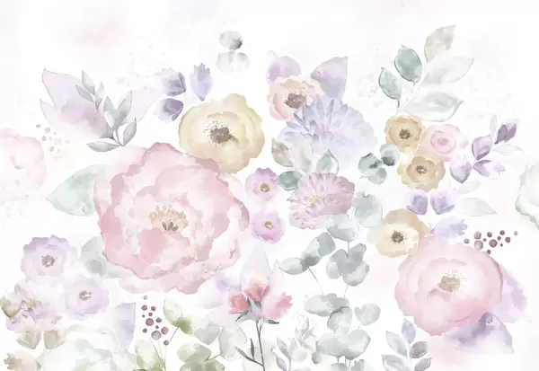 Fototapeter Myk akvarellkomposisjon med blomster og blader Nr. w05093