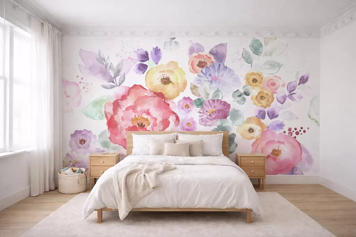 Fototapeter Pastellfargede akvarellblomster på lys bakgrunn Nr. w05093v1