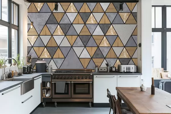 Fototapeter Triangel ornament med nøytrale og varme farger Nr. w05096v1