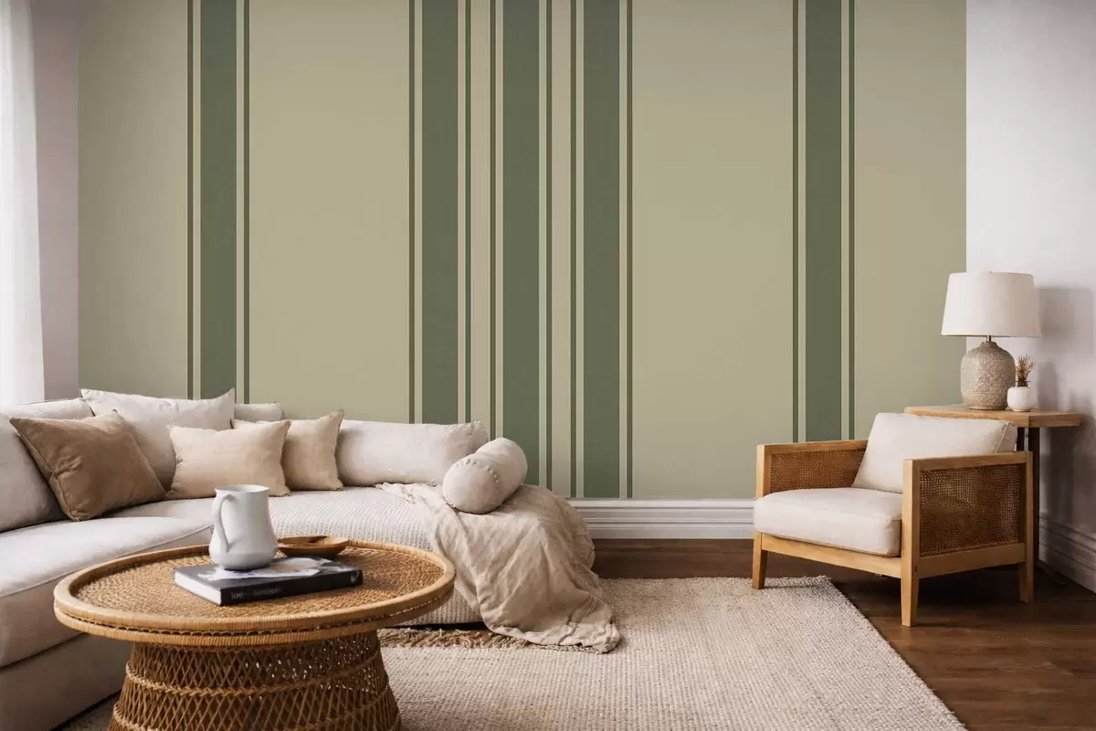 Fototapeter Vertikale striper i dempet grønn og beige fargepalett Nr. w05098