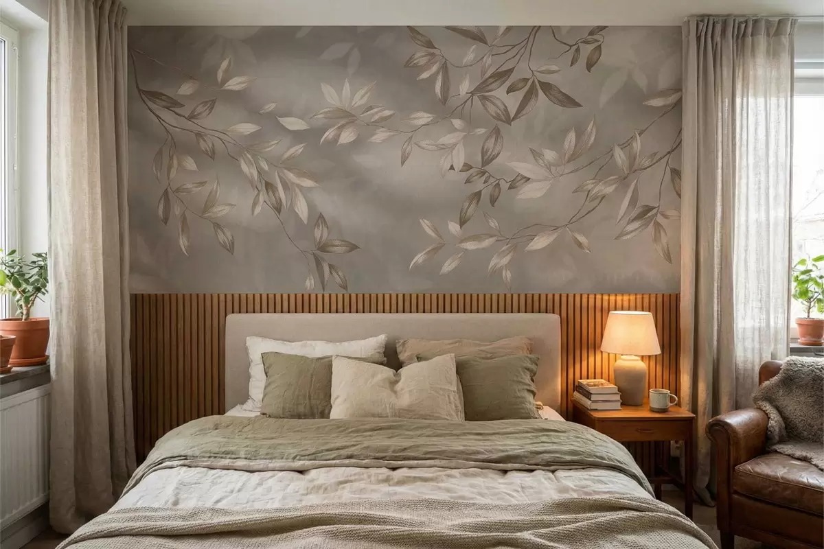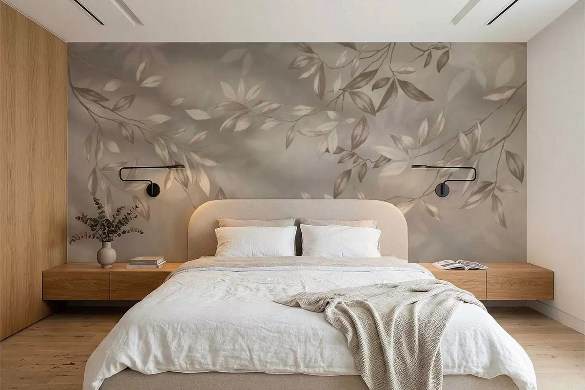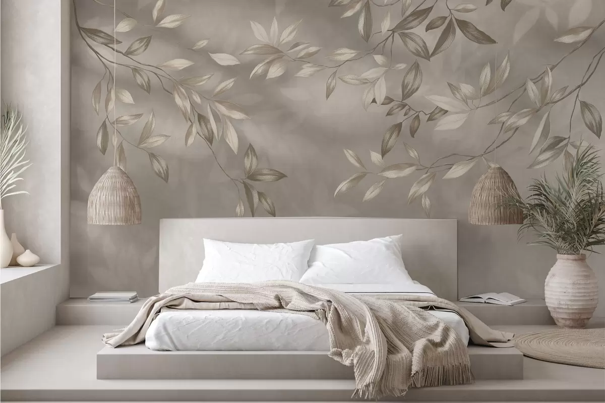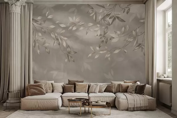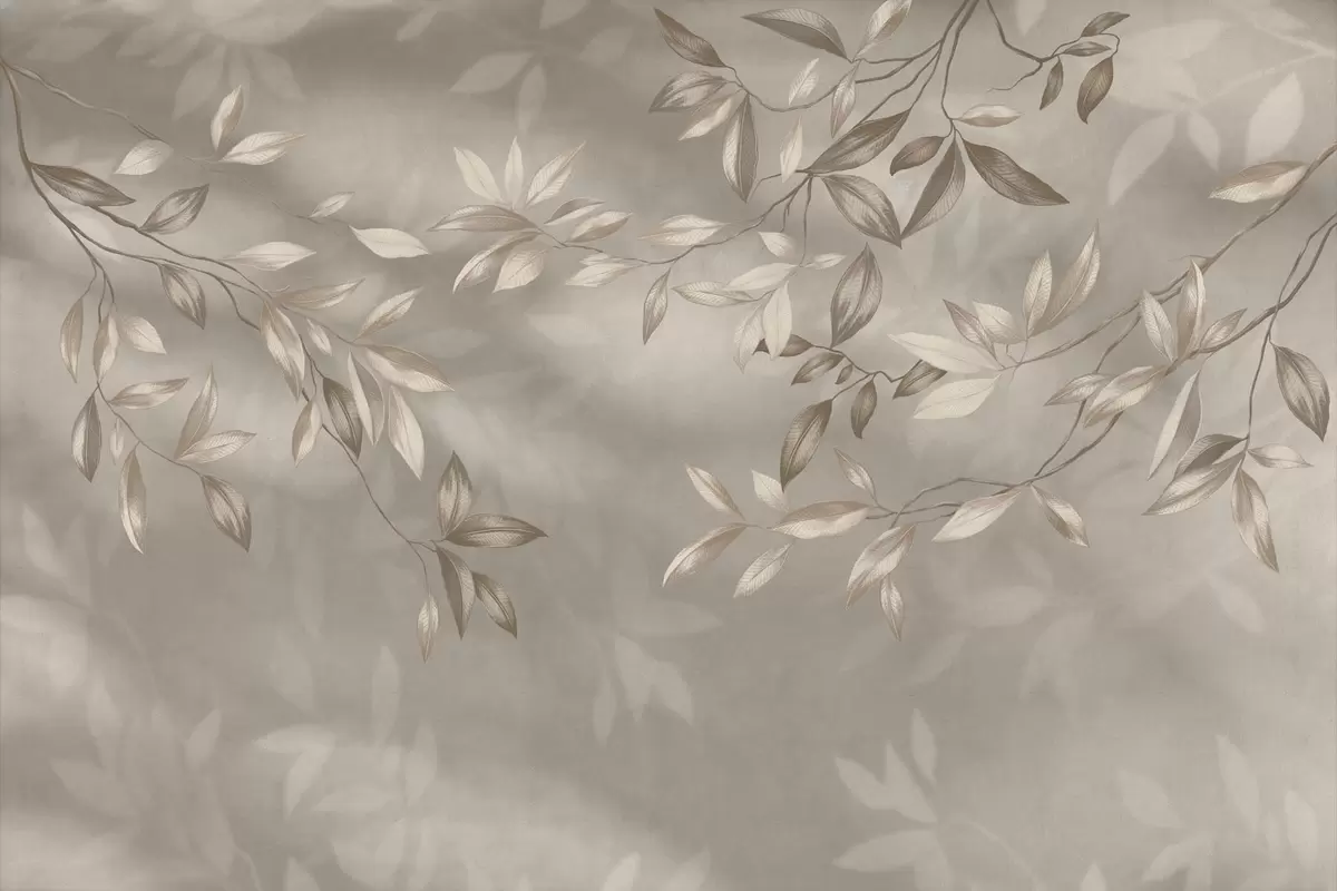 Fototapeter Elegante bladrike grener i beige nyanser på lys bakgrunn Nr. w05113