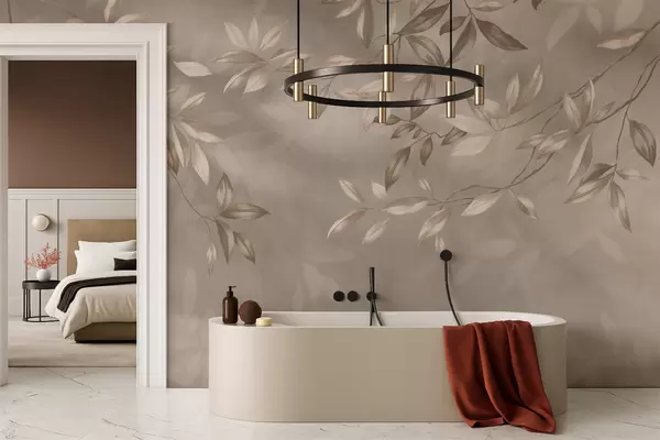 Fototapeter Elegante bladrike grener i beige nyanser på lys bakgrunn Nr. w05113