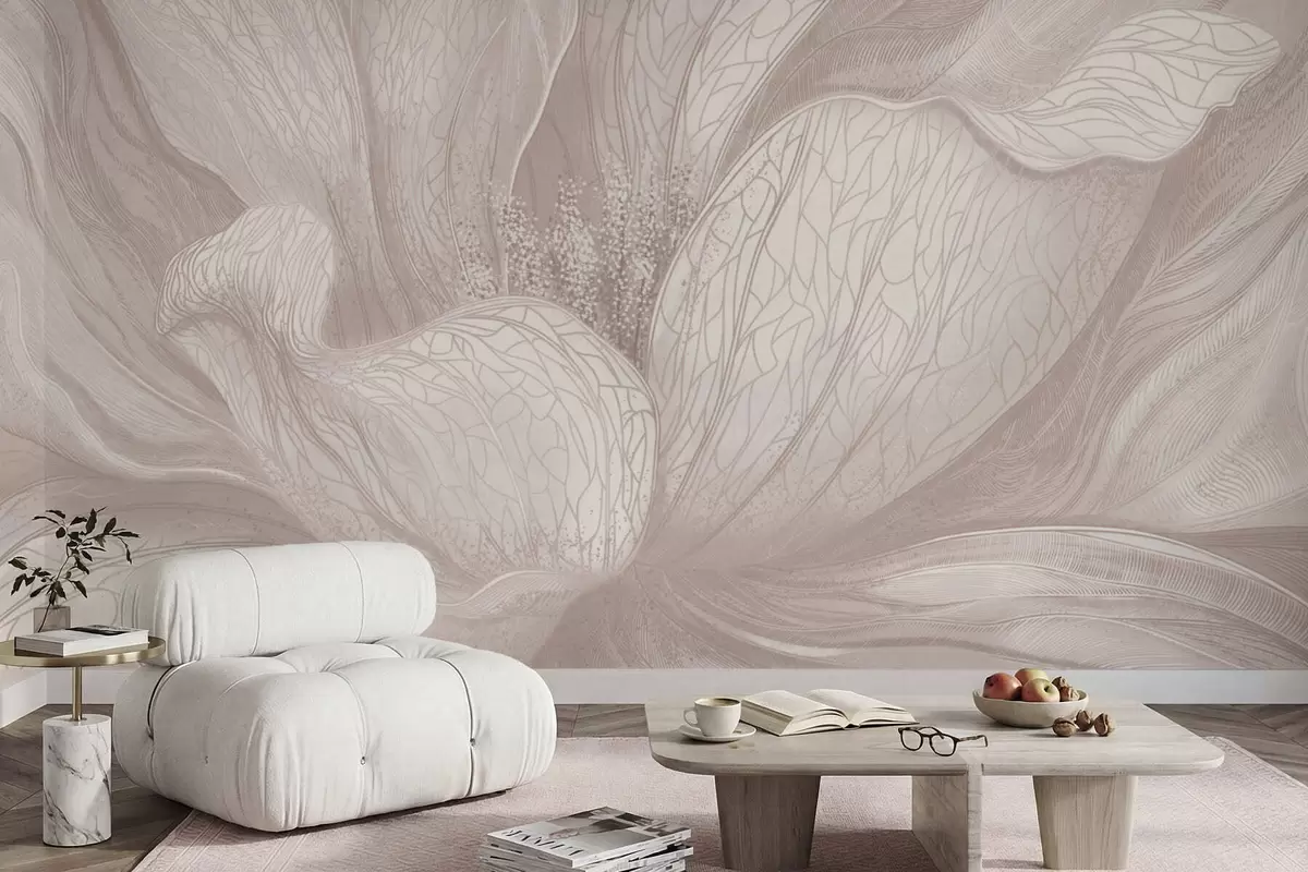 Fototapeter Abstrakt blomst i lyse beige nyanser Nr. w05119