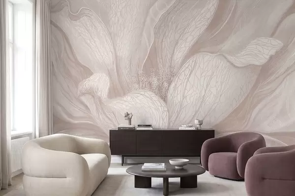 Fototapeter Abstrakt blomst i lyse beige nyanser Nr. w05119