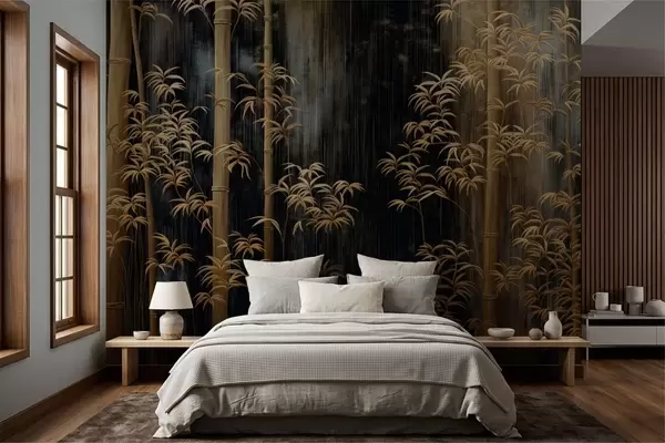 Fototapeter Mørk bambus på svart bakgrunn Nr. w05120