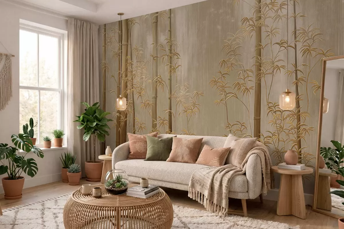 Fototapeter Beige bambus med tynne stengler Nr. w05120v2