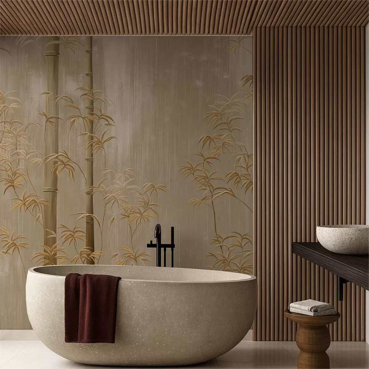 Fototapeter Beige bambus med tynne stengler Nr. w05120v2