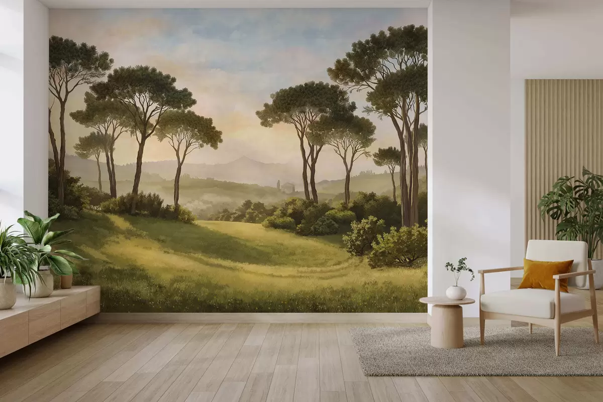 Fototapeter Landskap med trær i det varme solnedgangslyset Nr. w05122