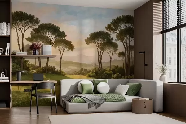 Fototapeter Landskap med trær i det varme solnedgangslyset Nr. w05122