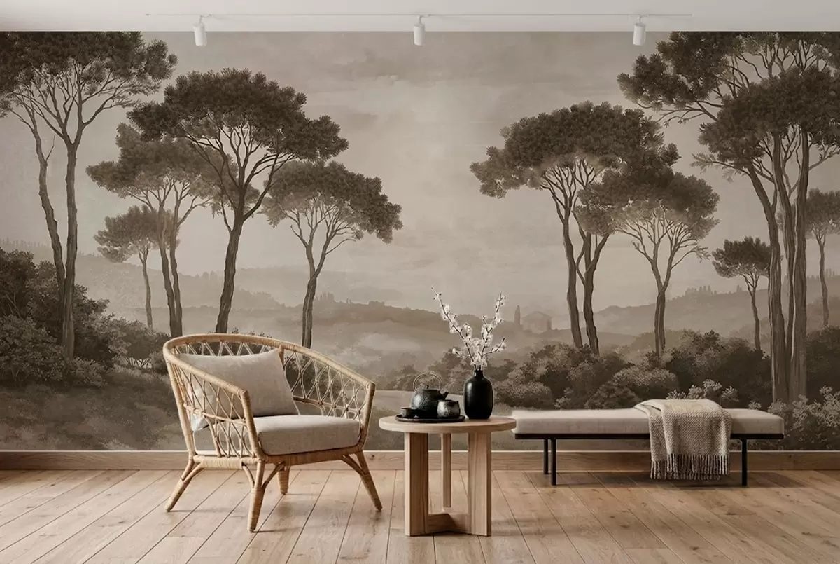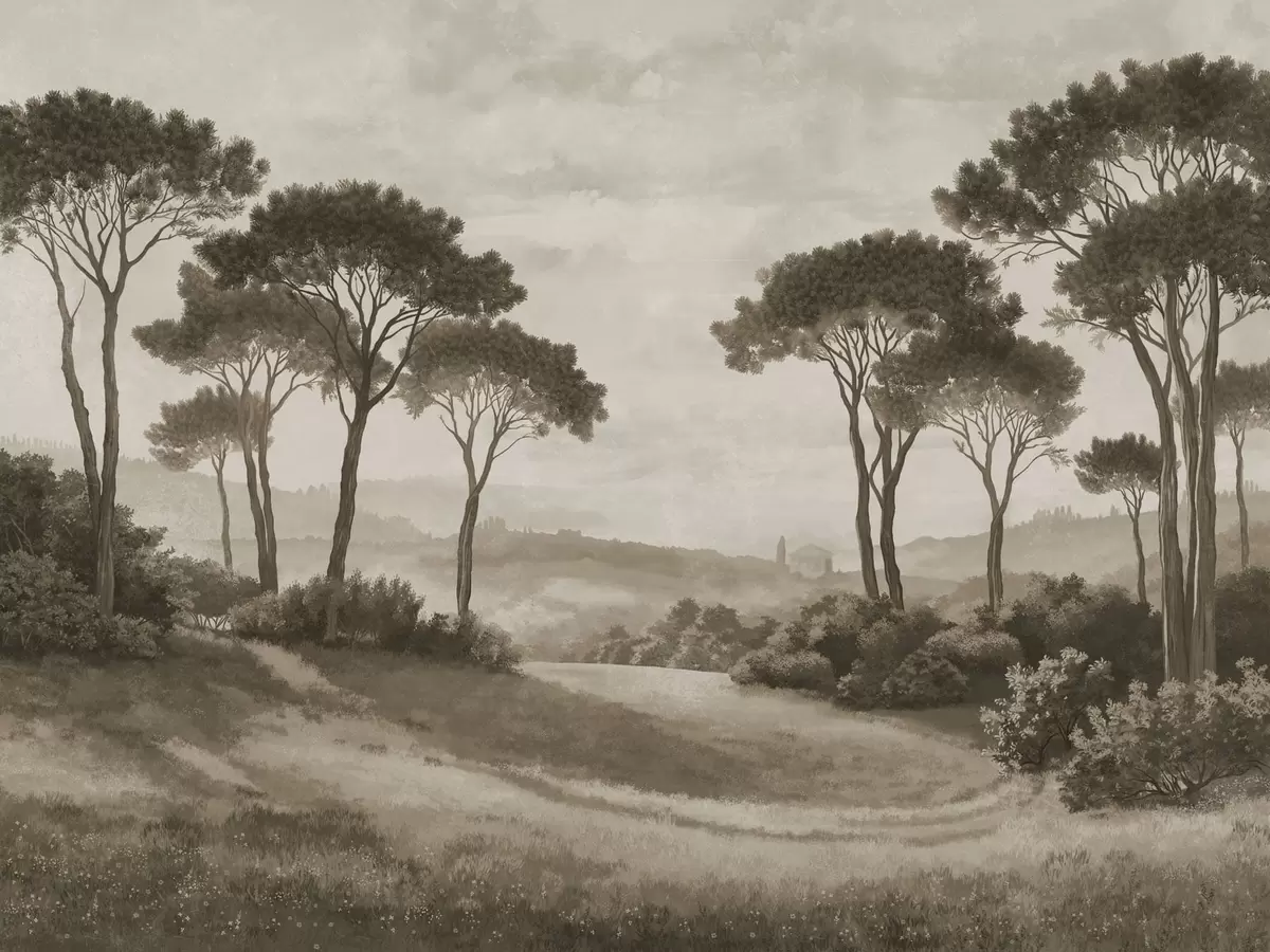 Fototapeter Landskap med trær i vintage-sepiatoner Nr. w05122v2