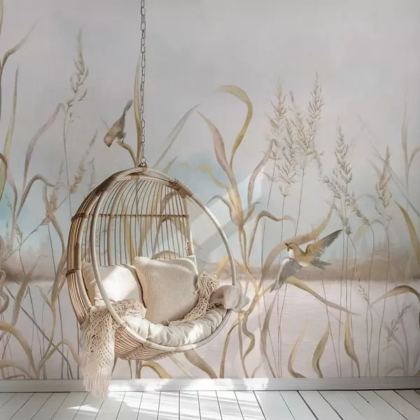 Fototapeter Illustrasjon av siv og fugler ved vannet i myke farger Nr. w05125