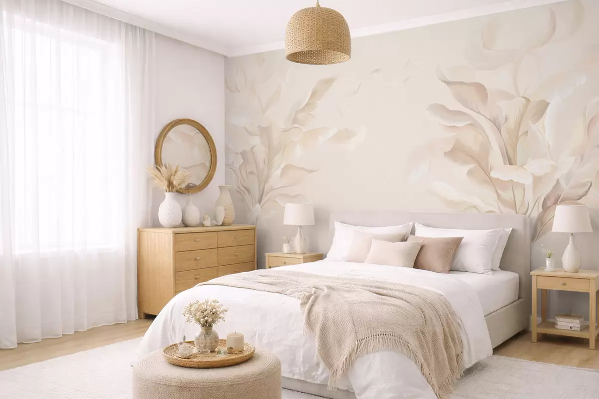 Fototapeter Luftige dekorative planter i varme kremfarger Nr. w05126