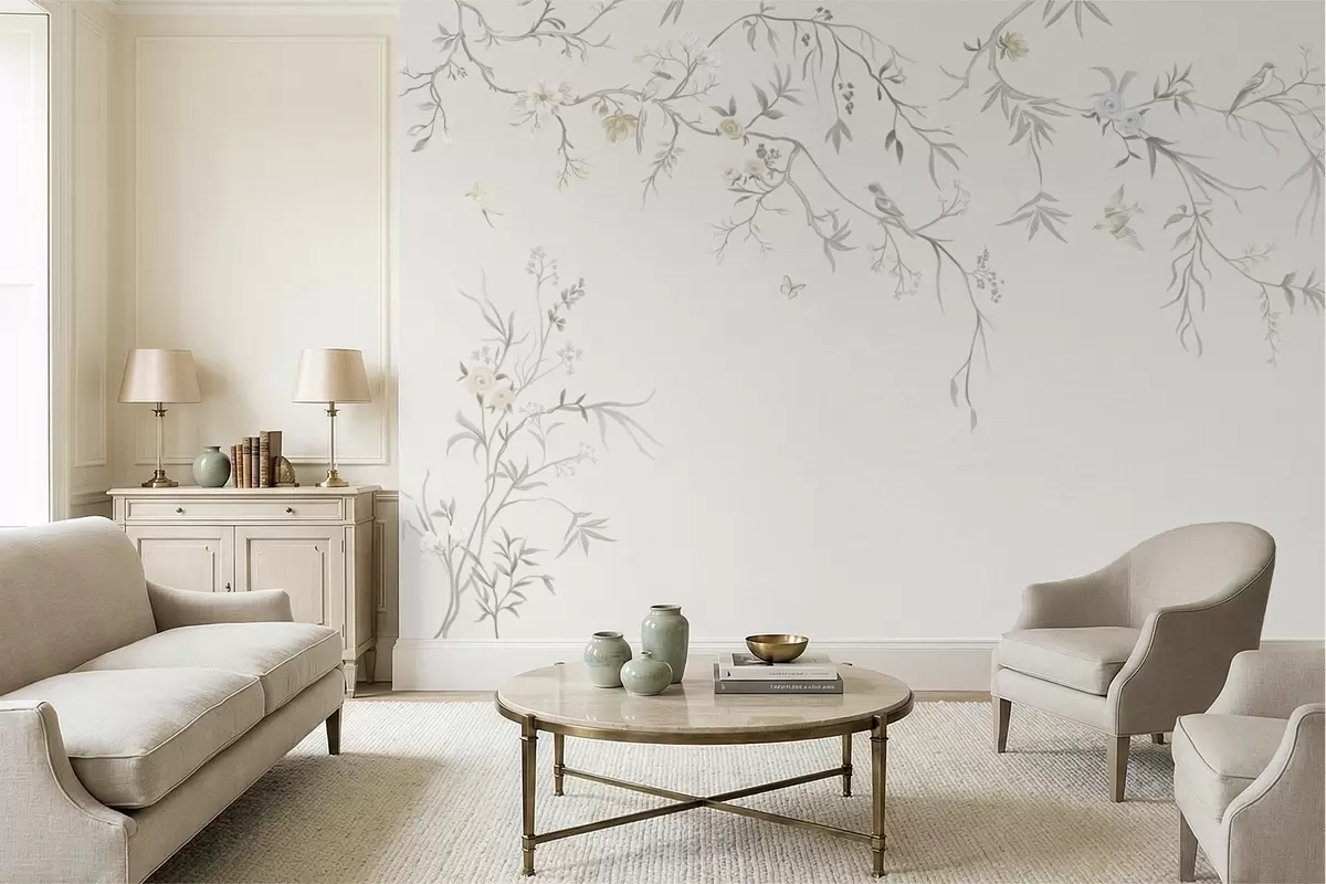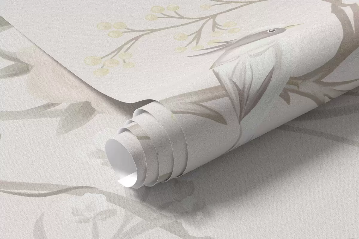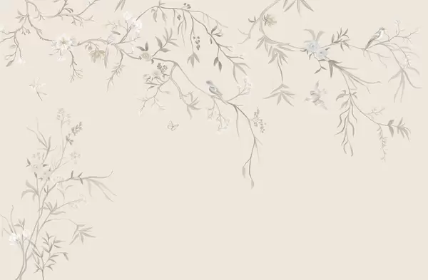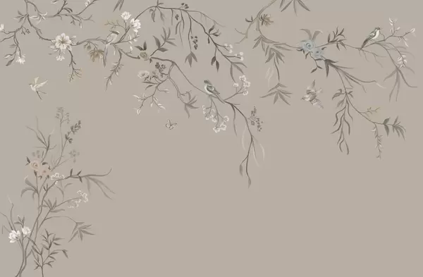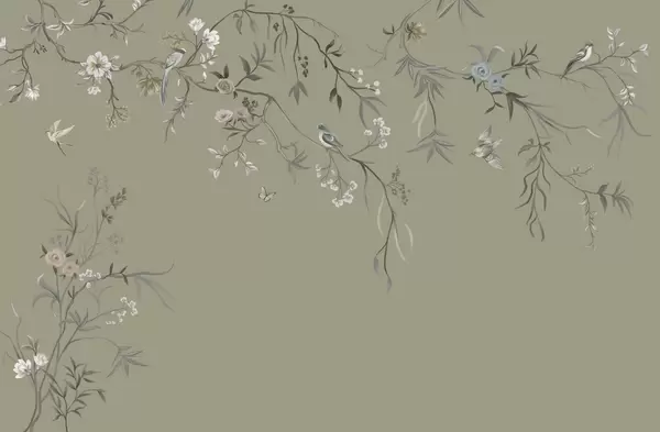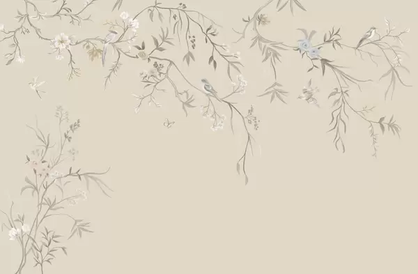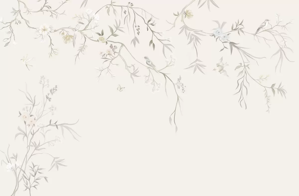 Fototapeter Delikate blomster og fugler på en krittbakgrunn Nr. w05127