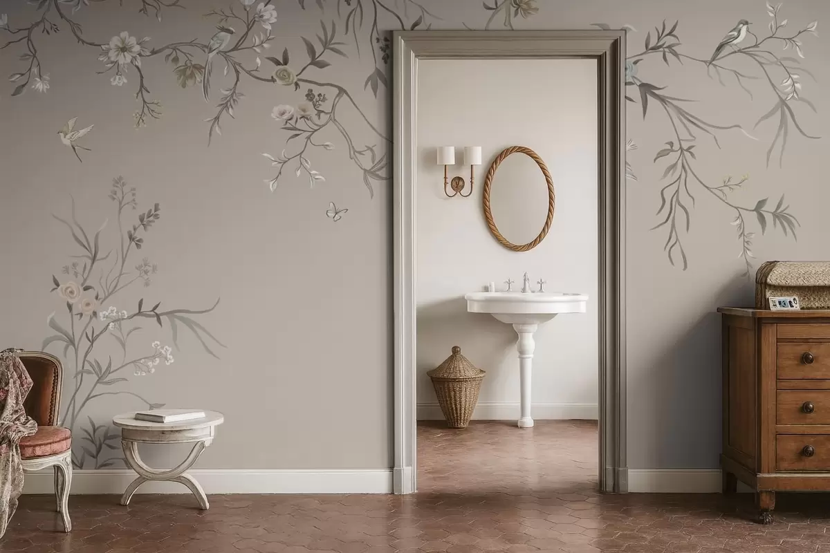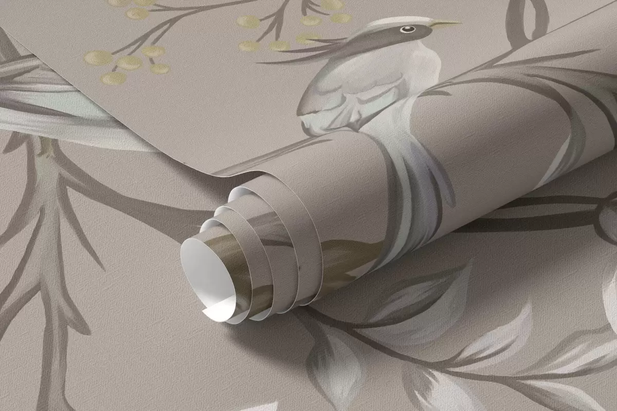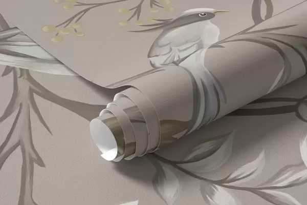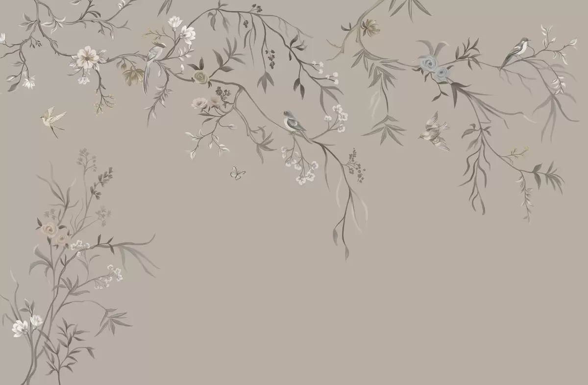 Fototapeter Blomsterornament med fugler på nøytral bakgrunn Nr. w05127v3