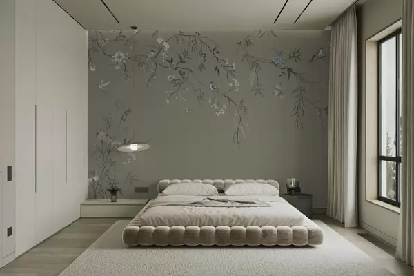 Fototapeter Blomstermotiv med fugler på grå bakgrunn Nr. w05127v4