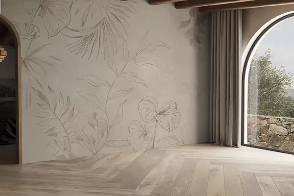 Fototapeter Lineære planter på strukturert beige bakgrunn Nr. w05128