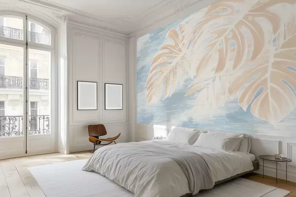 Fototapeter Abstrakte blader i varme beige toner på en lys bakgrunn Nr. w05130