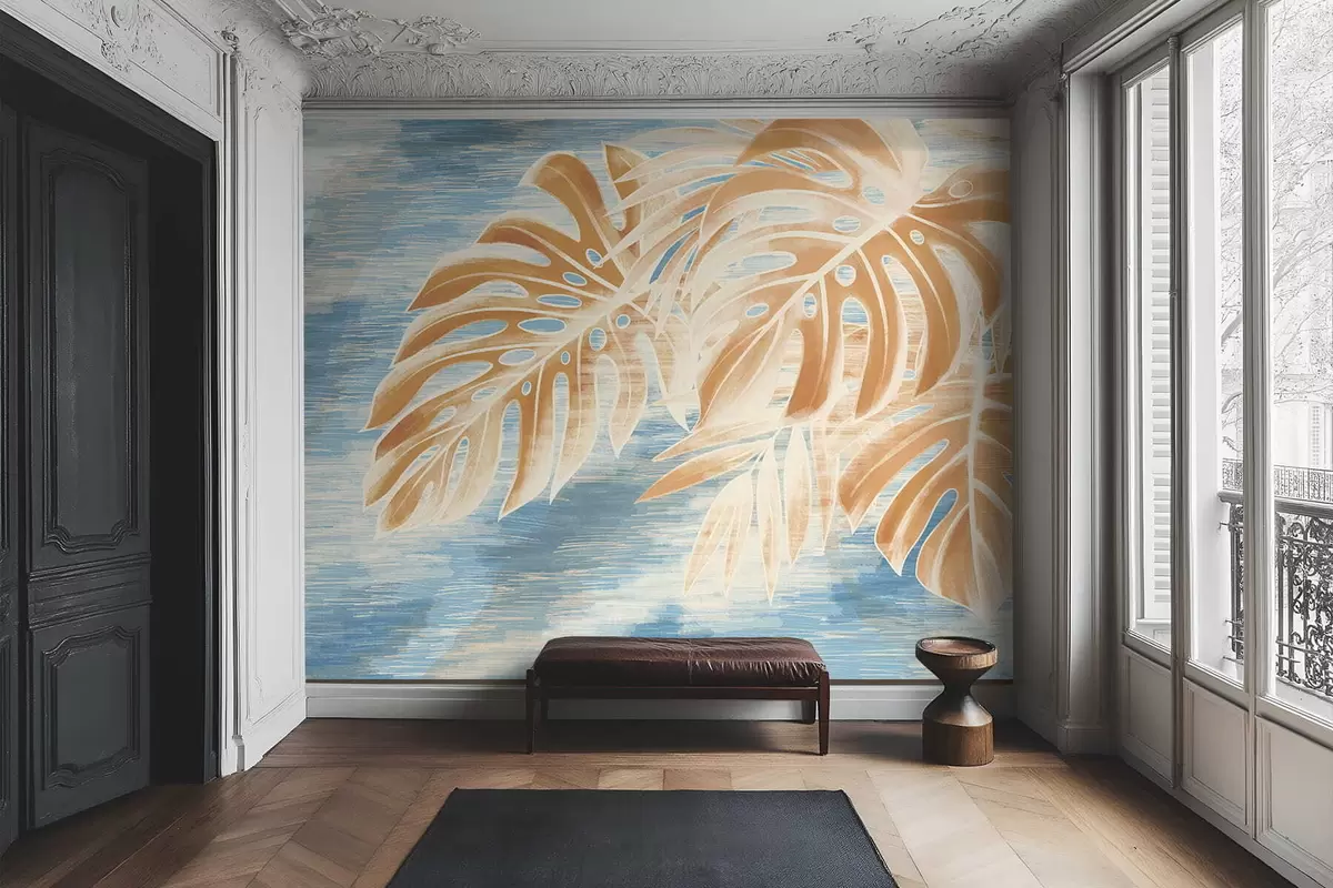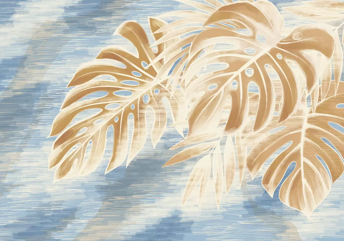 Fototapeter Blader i lyse sandfarger på blå bakgrunn Nr. w05130v1