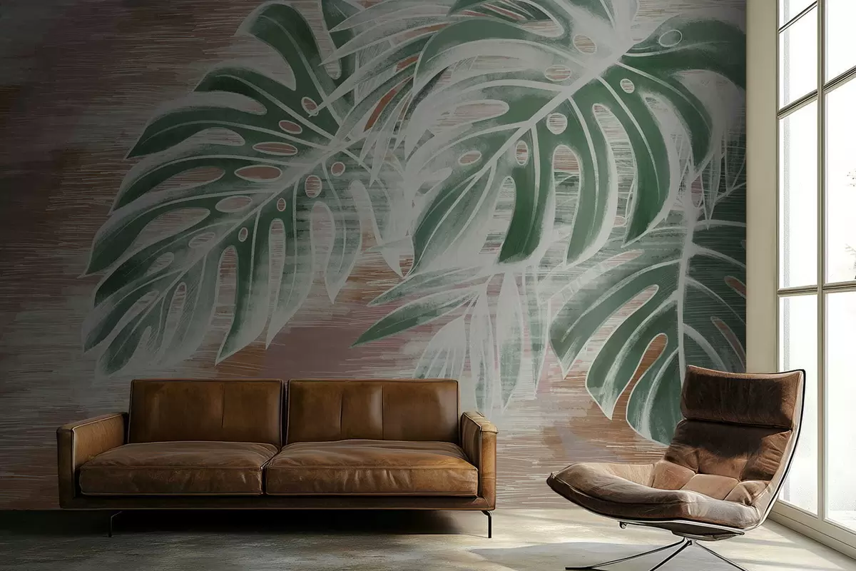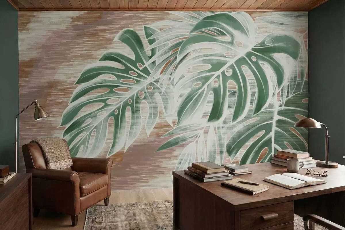 Fototapeter Grønne blader på en varm, strukturert abstrakt base Nr. w05130v3