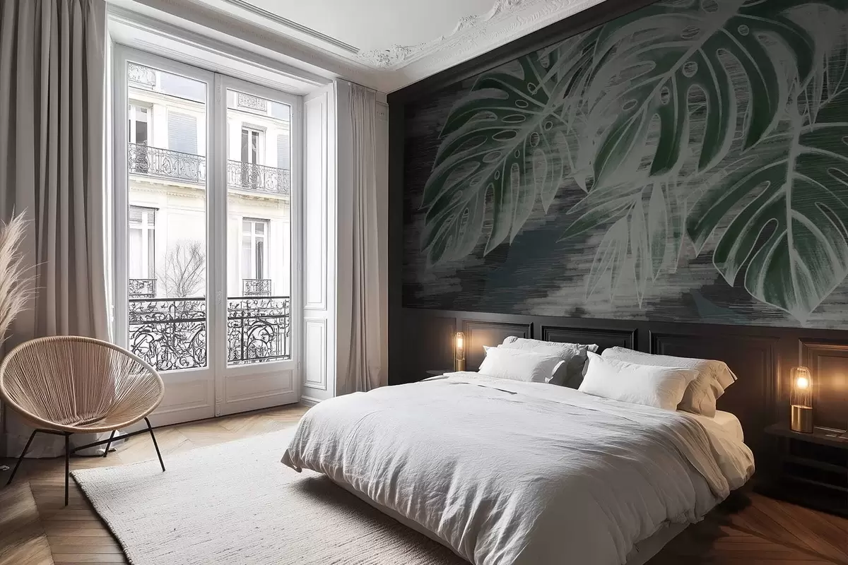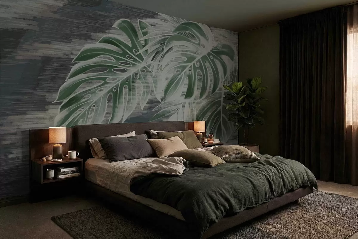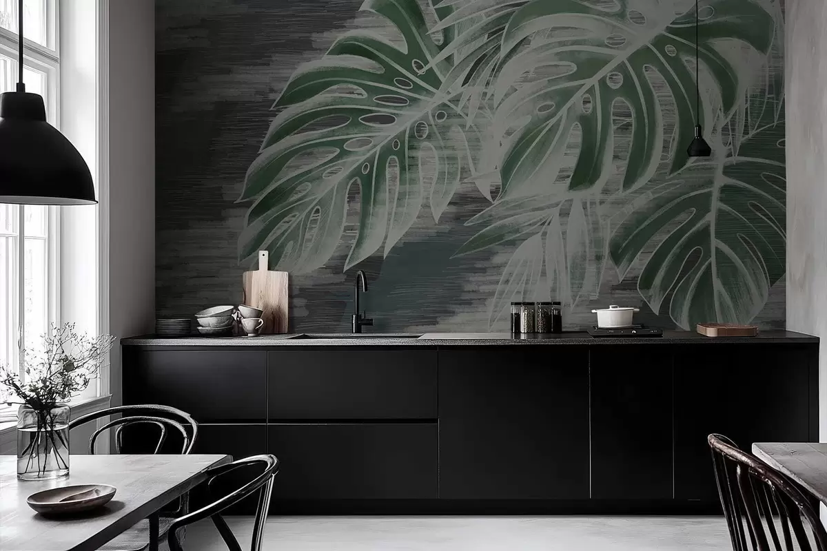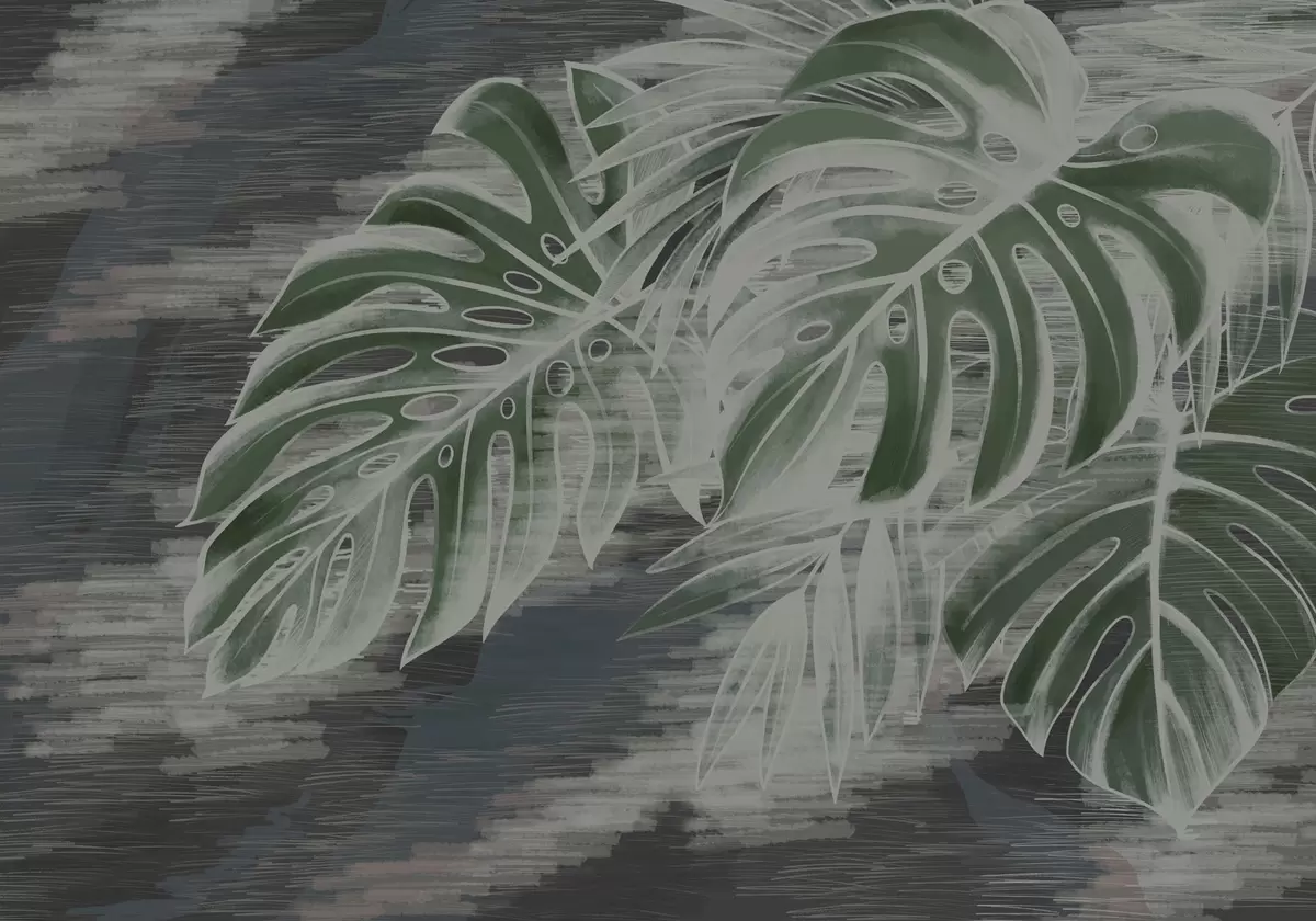 Fototapeter Mørkegrønne blader på en strukturert mørk bakgrunn Nr. w05130v4