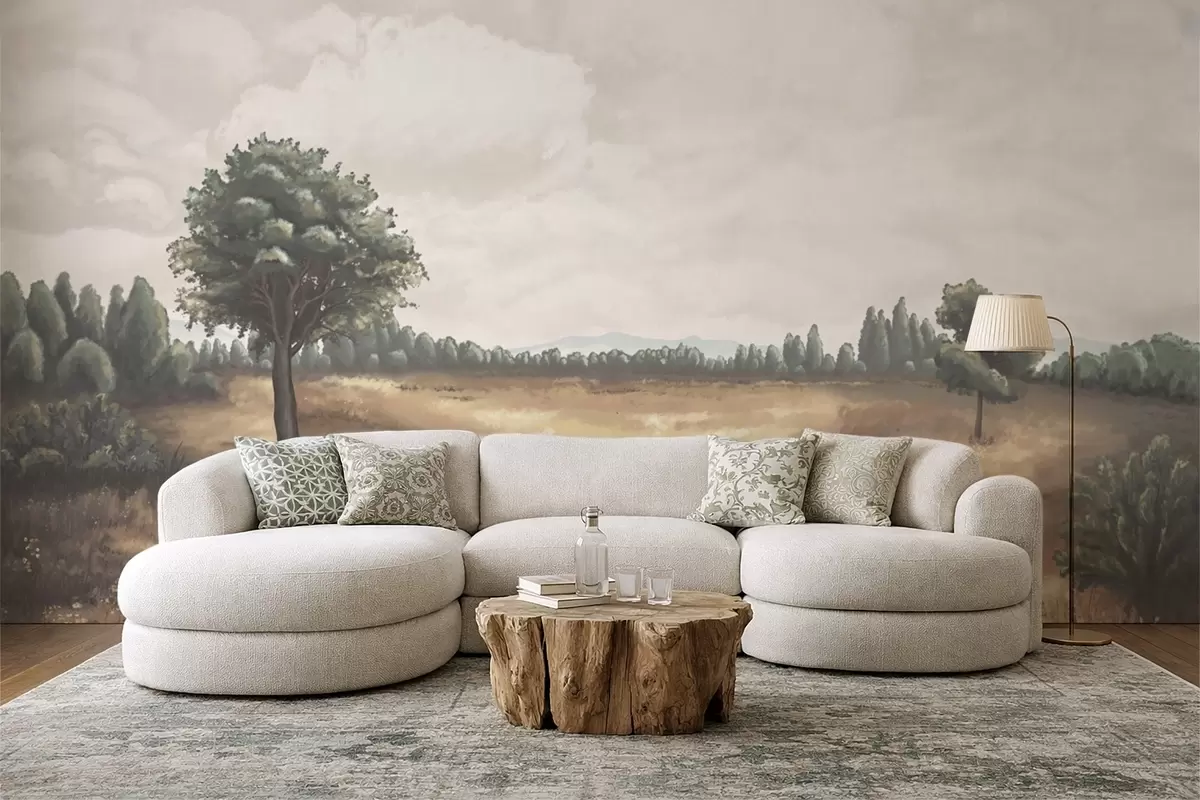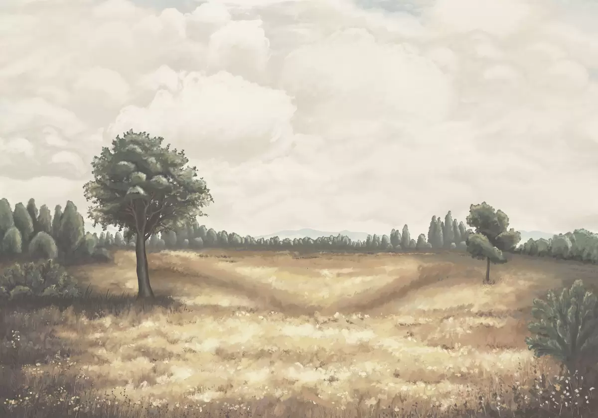Fototapeter Malt landskap med trær og åpent felt Nr. w05131
