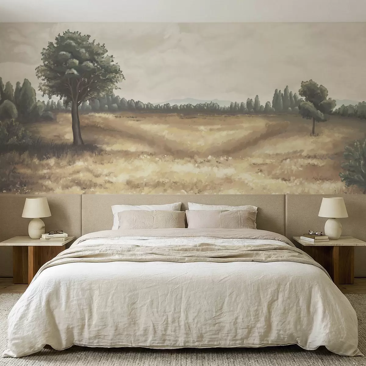 Fototapeter Malt landskap med trær og åpent felt Nr. w05131