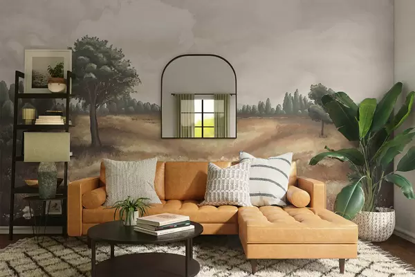 Fototapeter Malt landskap med trær og åpent felt Nr. w05131