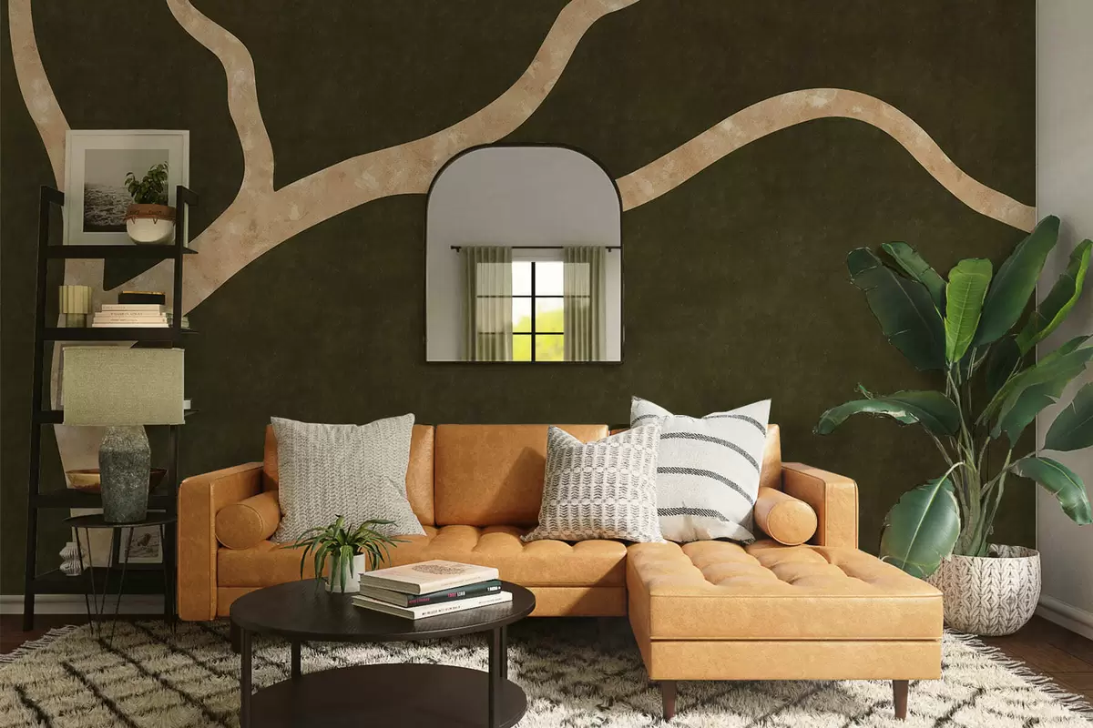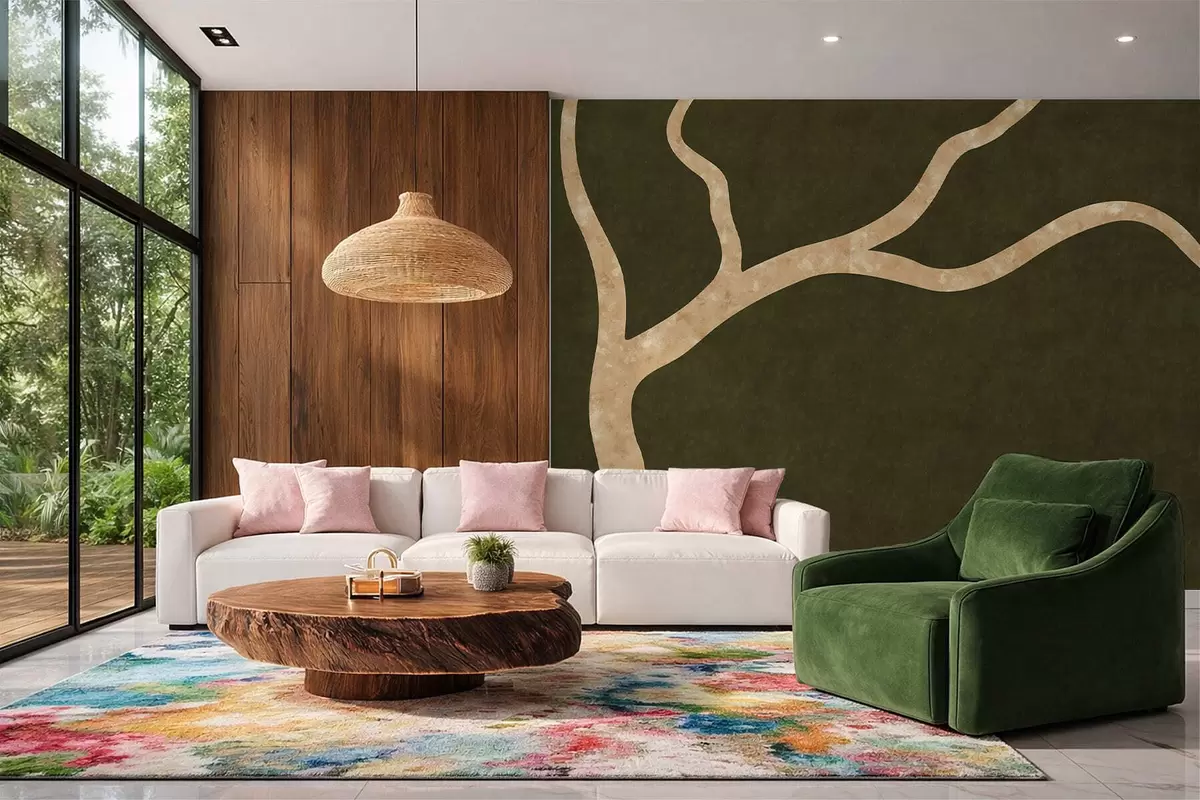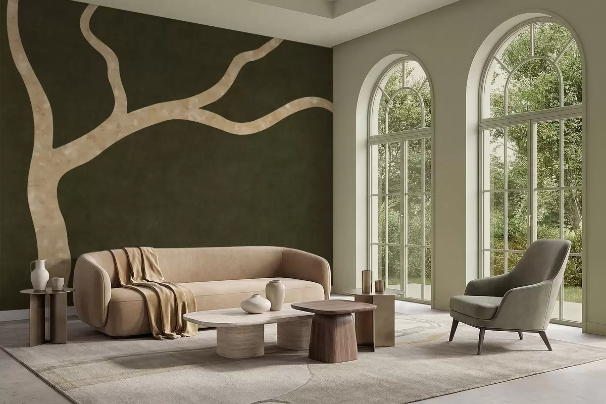Fototapeter Lys gren på olivenbakgrunn Nr. w05144v2