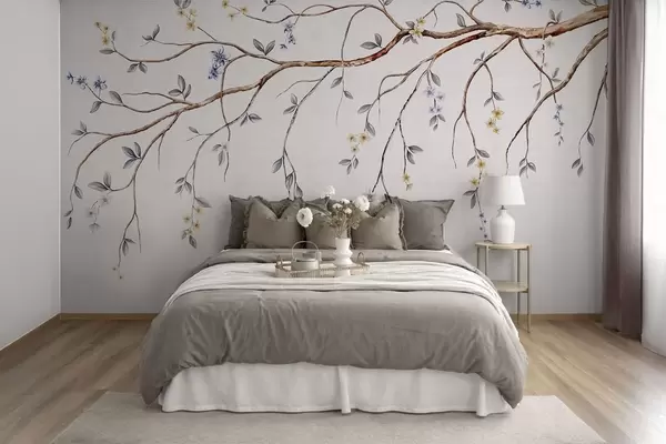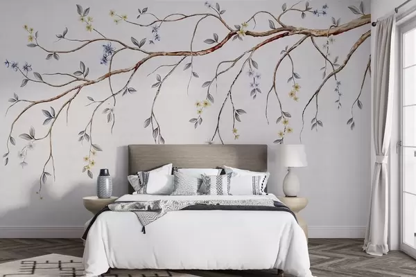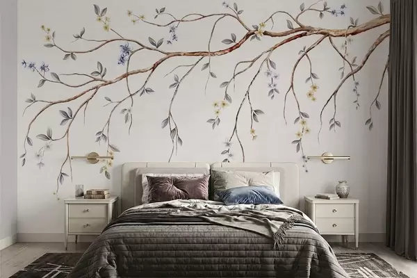 Fototapeter Tynne grener med små blomster på lys bakgrunn Nr. w05145