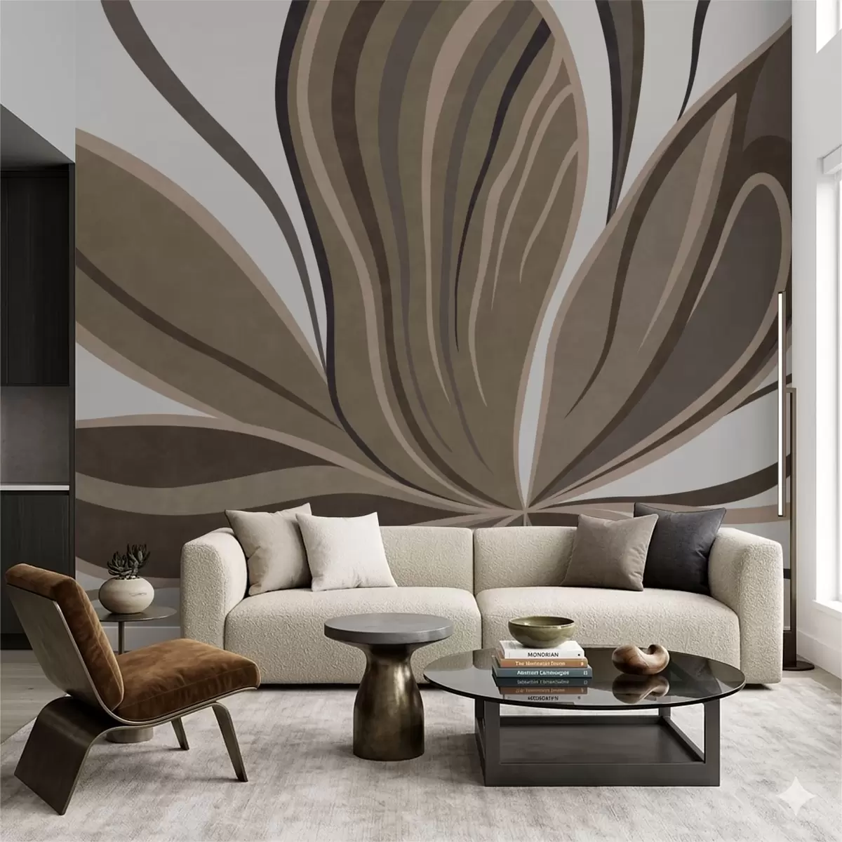 Fototapeter En stilisert blomst med flytende linjer i brune nyanser Nr. w05147