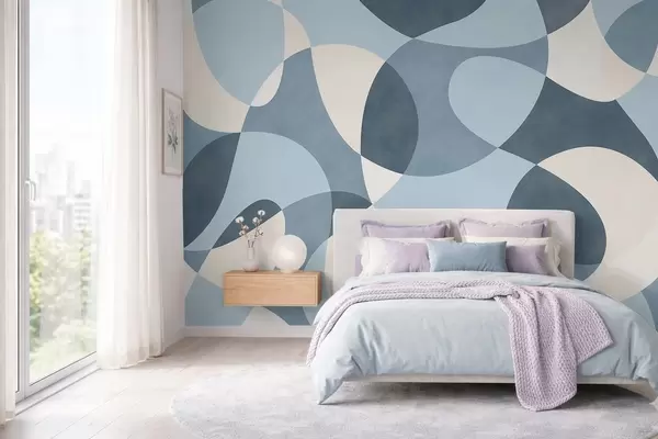 Fototapeter Abstrakt mønster med avrundede former i blå nyanser Nr. w05149v2