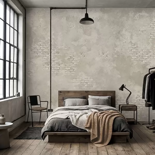 Fototapeter Lys grungepuss med partier av synlig murstein Nr. w05161v1