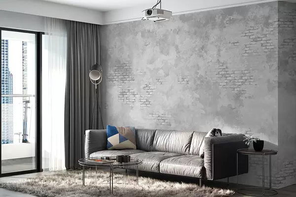 Fototapeter Grungegrå puss med synlige mursteinspartier Nr. w05161v2