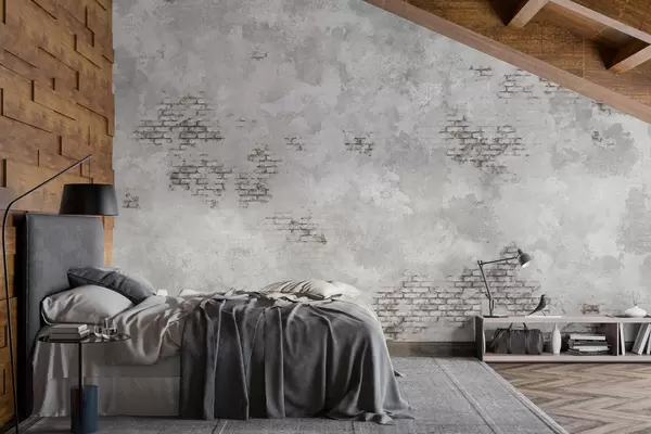 Fototapeter Grungegrå puss med synlige mursteinspartier Nr. w05161v2