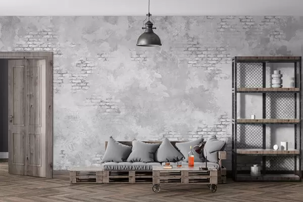 Fototapeter Grungegrå puss med synlige mursteinspartier Nr. w05161v2