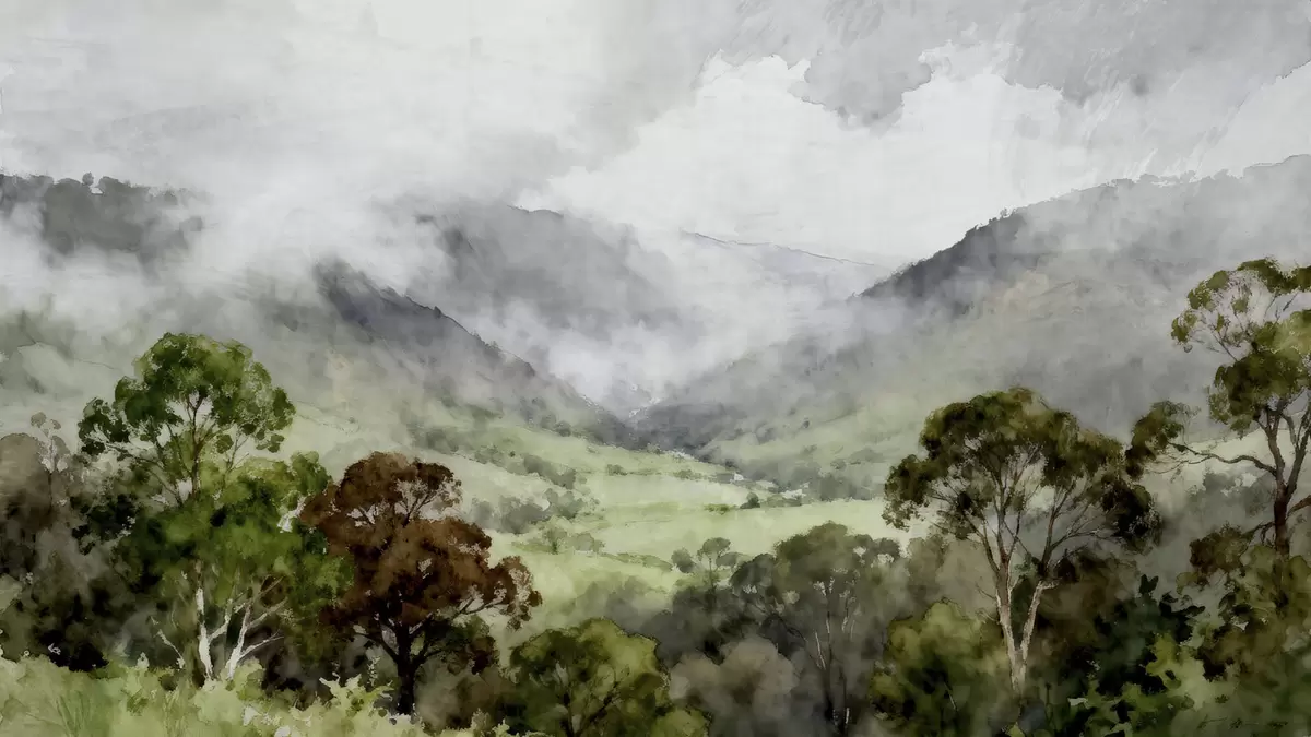 Fototapeter Malt landskap i tåken Nr. w05185