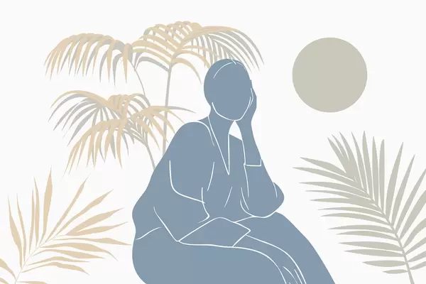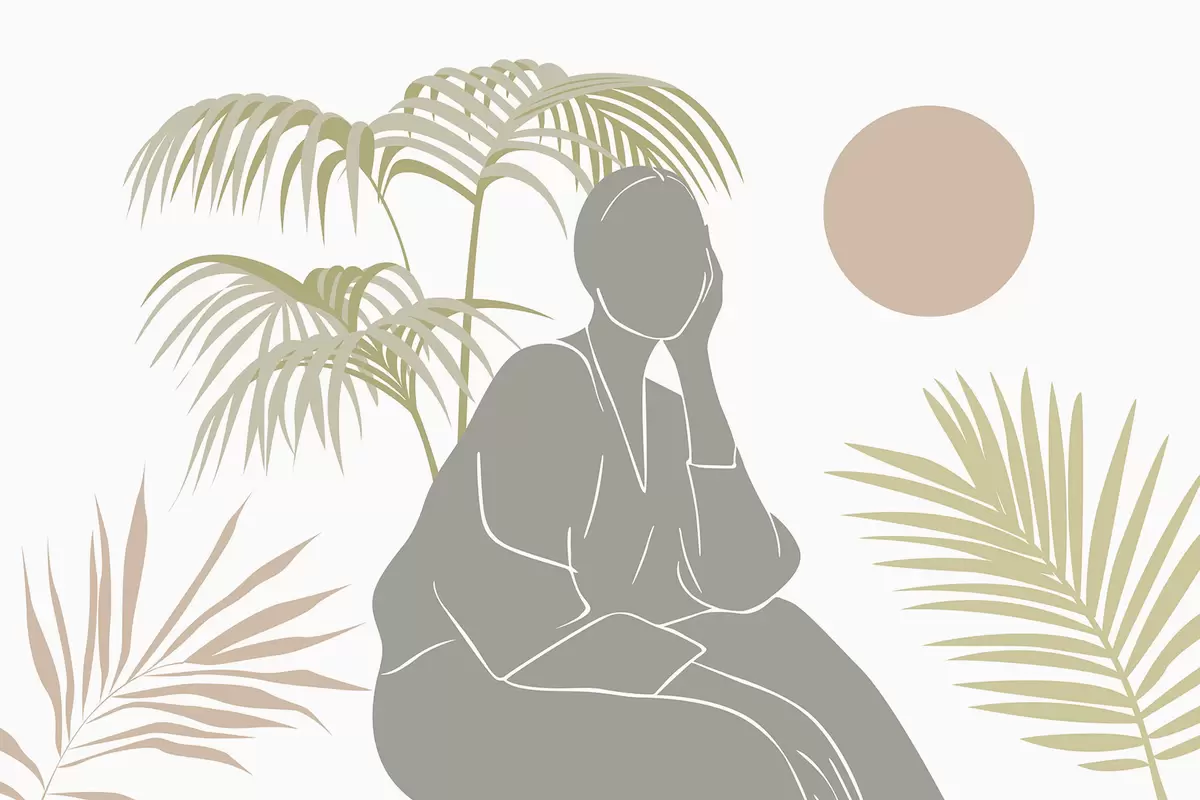 Fototapeter Silhuett av en kvinne og palmeblader Nr. w05190