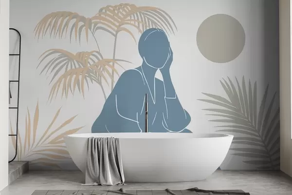 Fototapeter Silhuett av en kvinne og palmeblader Nr. w05190v1