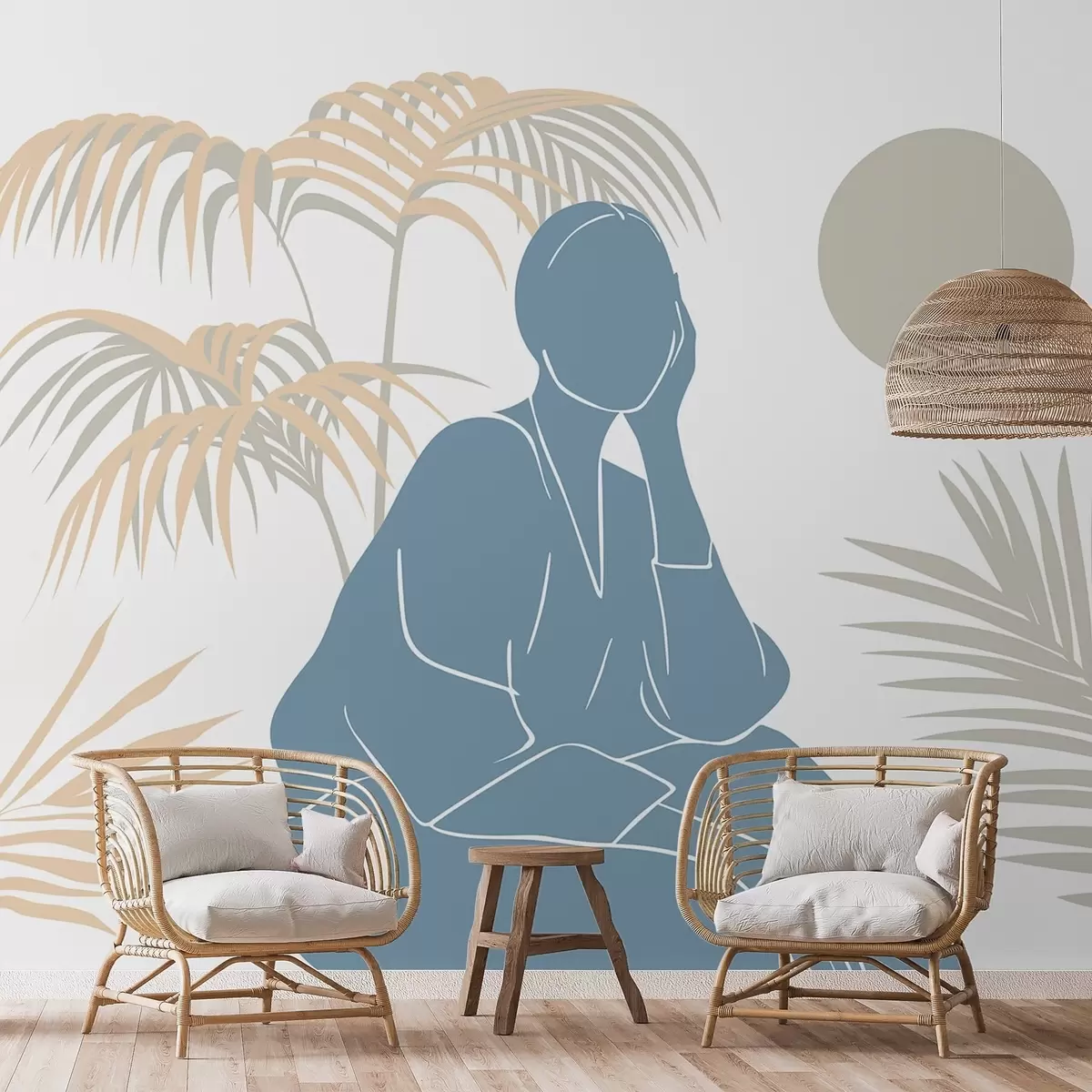 Fototapeter Silhuett av en kvinne og palmeblader Nr. w05190v1