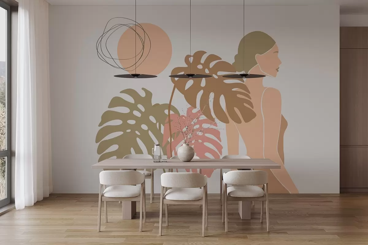 Fototapeter Silhuett av en kvinne nær tropiske blader Nr. w05192v1