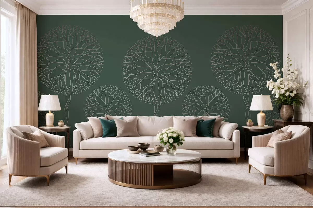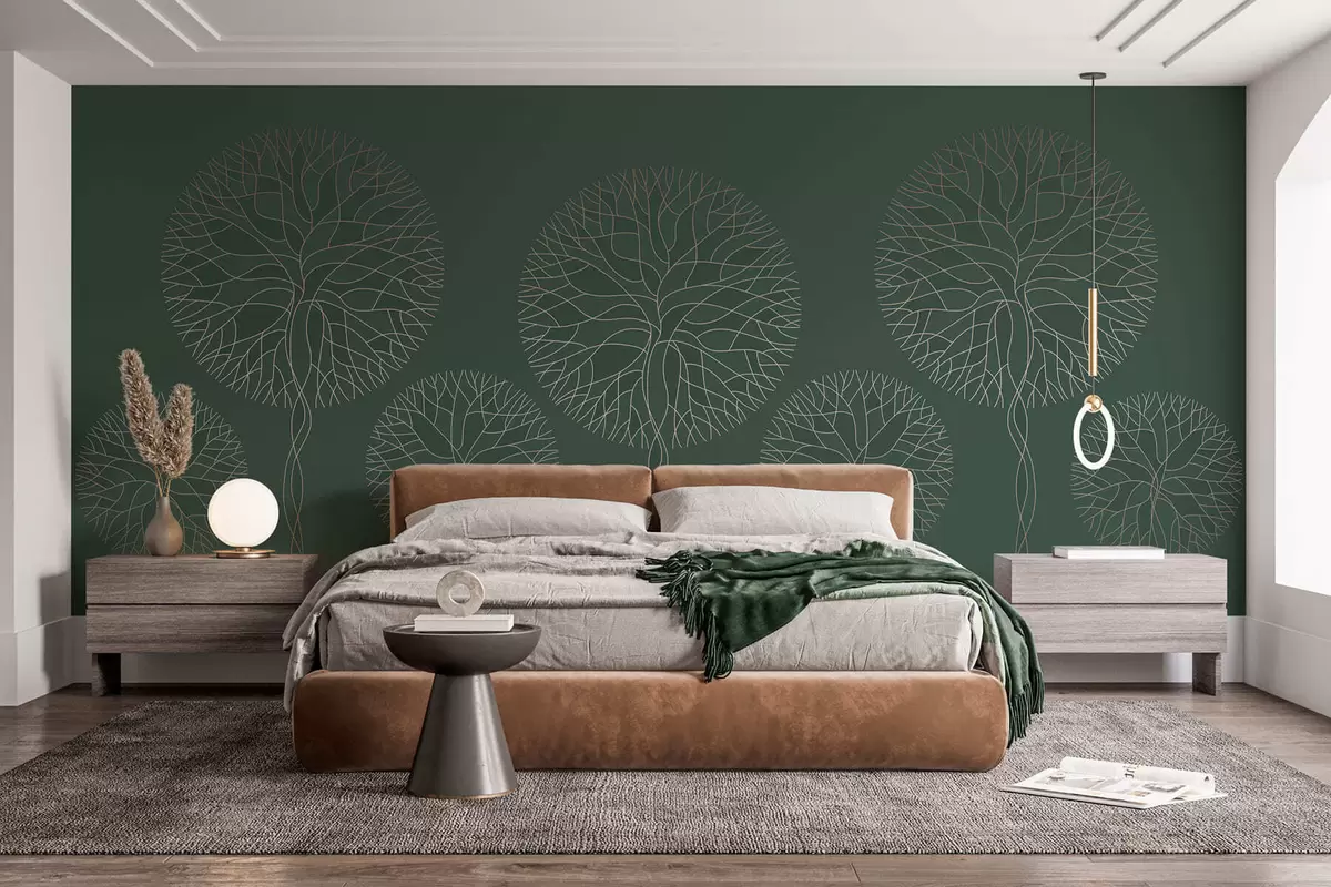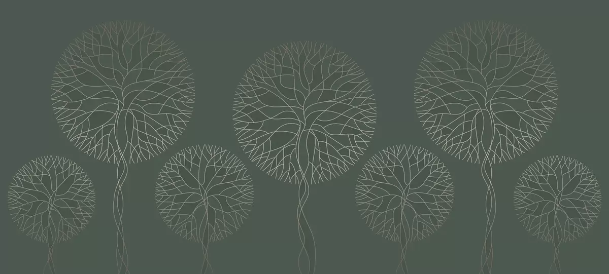 Fototapeter Fantastiske lineære trær med frodige kroner i elegante mørkegrønne toner Nr. w05213v2