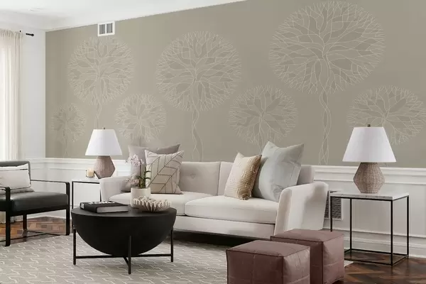 Fototapeter Fantastiske lineære trær med frodige kroner i beige toner Nr. w05213v3