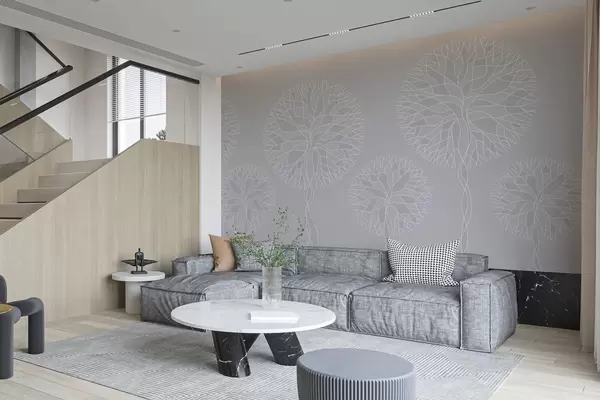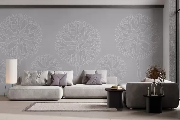 Fototapeter Fantastiske lineære trær med frodige kroner i lysegrå toner Nr. w05213v4