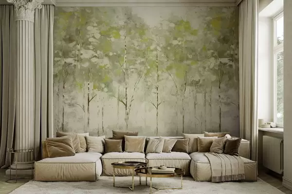 Fototapeter Stilisert skog med slanke trær i grønne fargetoner Nr. w05221v1