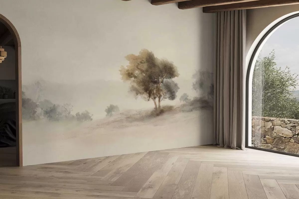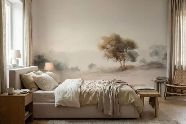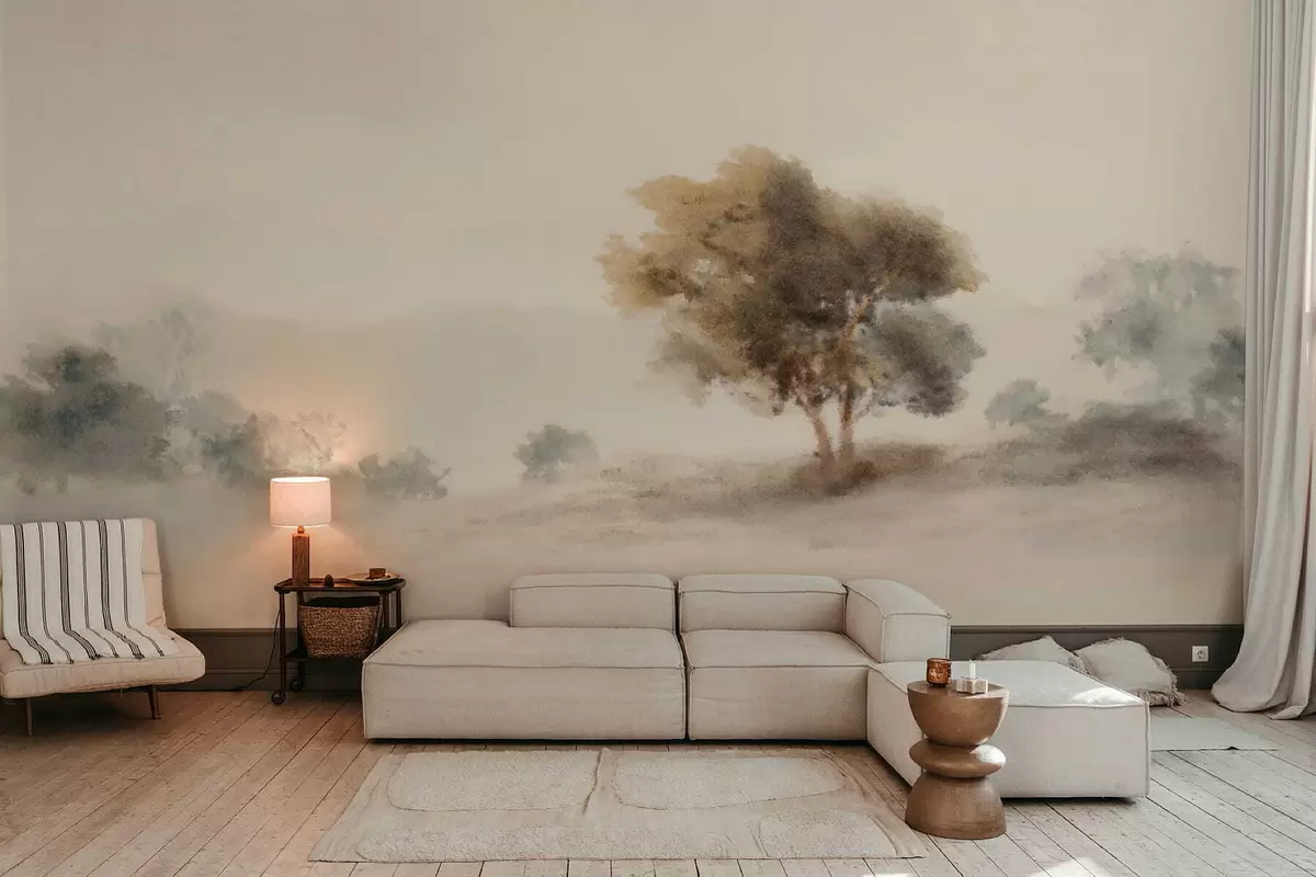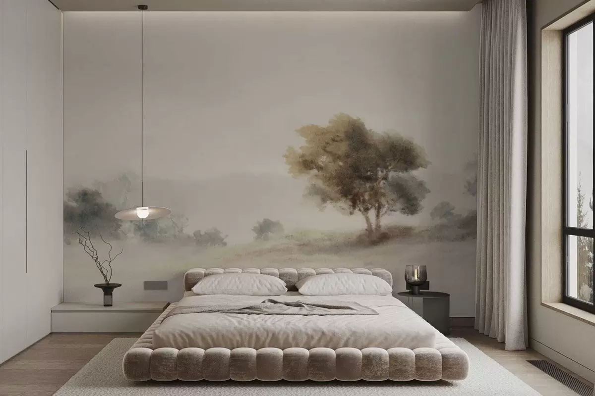 Fototapeter Minimalistisk landskap med et ensomt tre i tåke Nr. w05223