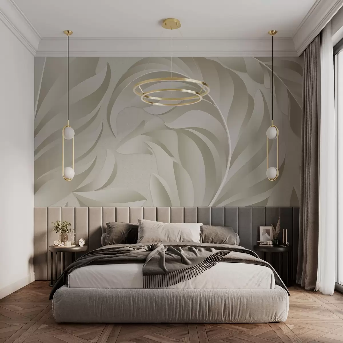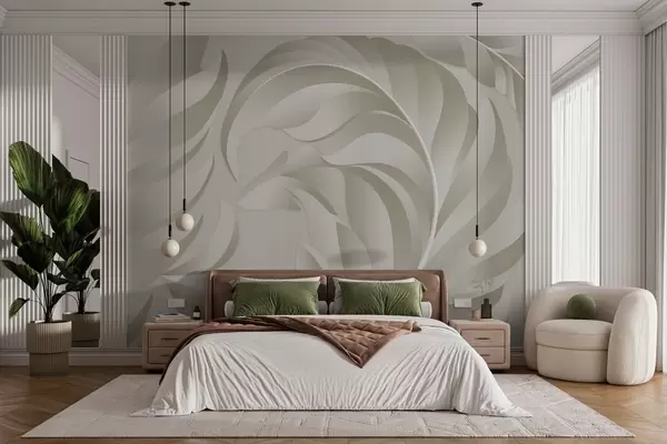 Fototapeter store teksturerte fjær i beige og olivengrønne nyanser Nr. w05231v1