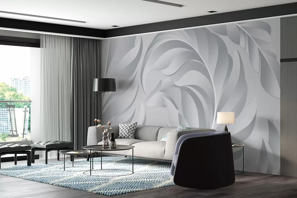 Fototapeter store teksturerte fjær i gråtoner Nr. w05231v3