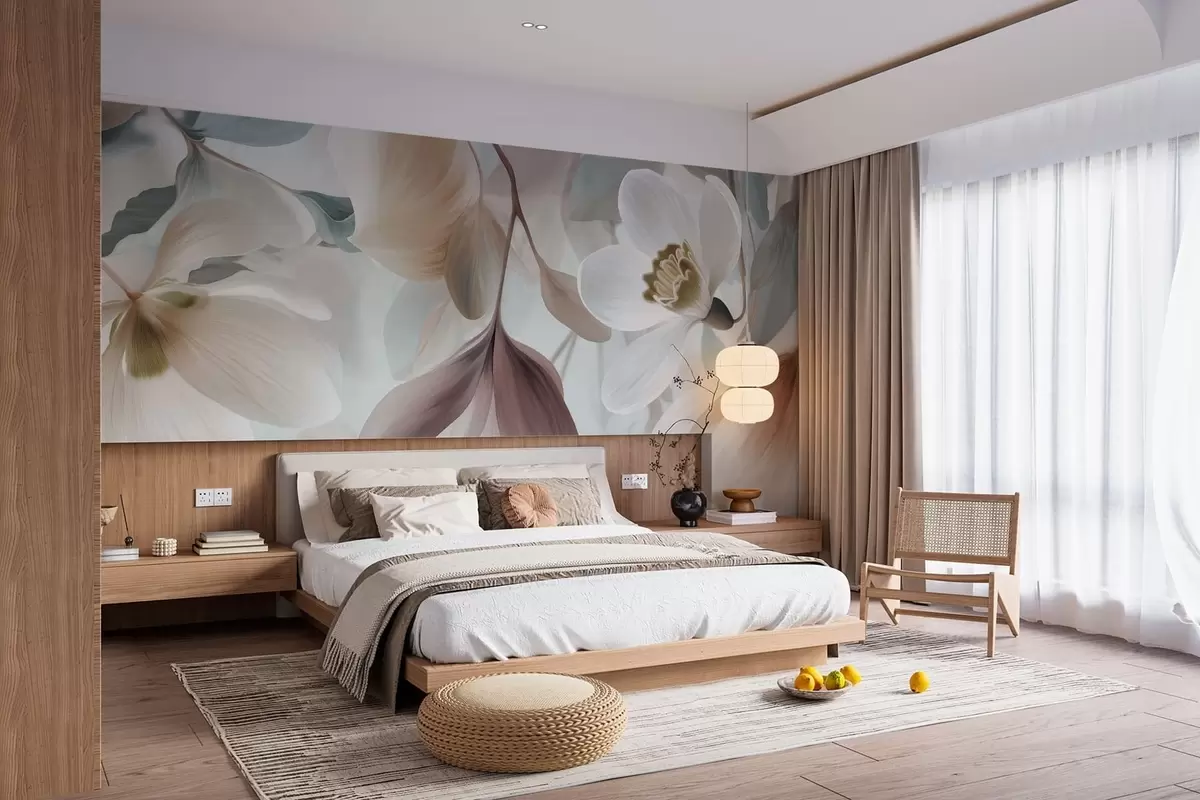 Fototapeter en delikat komposisjon av blomster og blader i pastellfarger Nr. w05240