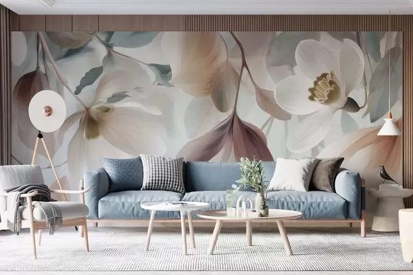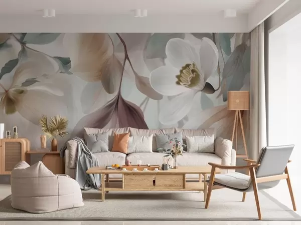 Fototapeter en delikat komposisjon av blomster og blader i pastellfarger Nr. w05240