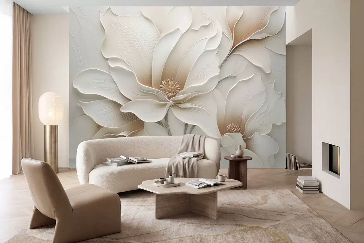 Fototapeter Preget beige blomsterrelieff i nærbilde Nr. w05269